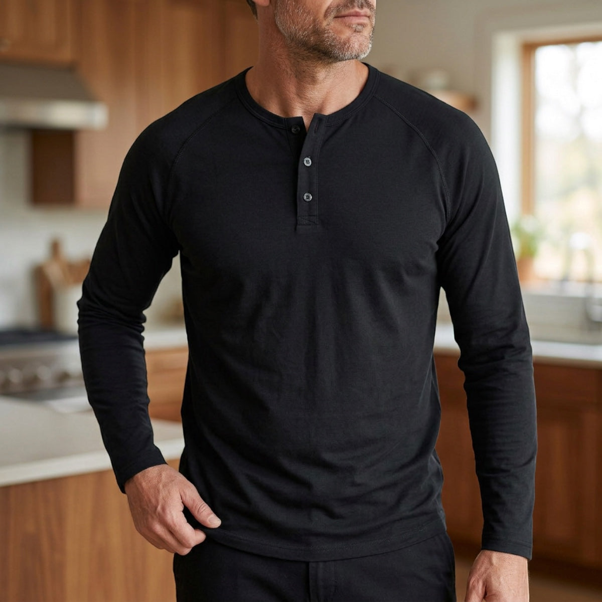 • Manches raglan aux coutures marquées — offrent une amplitude naturelle aux épaules tout en soulignant leur carrure.